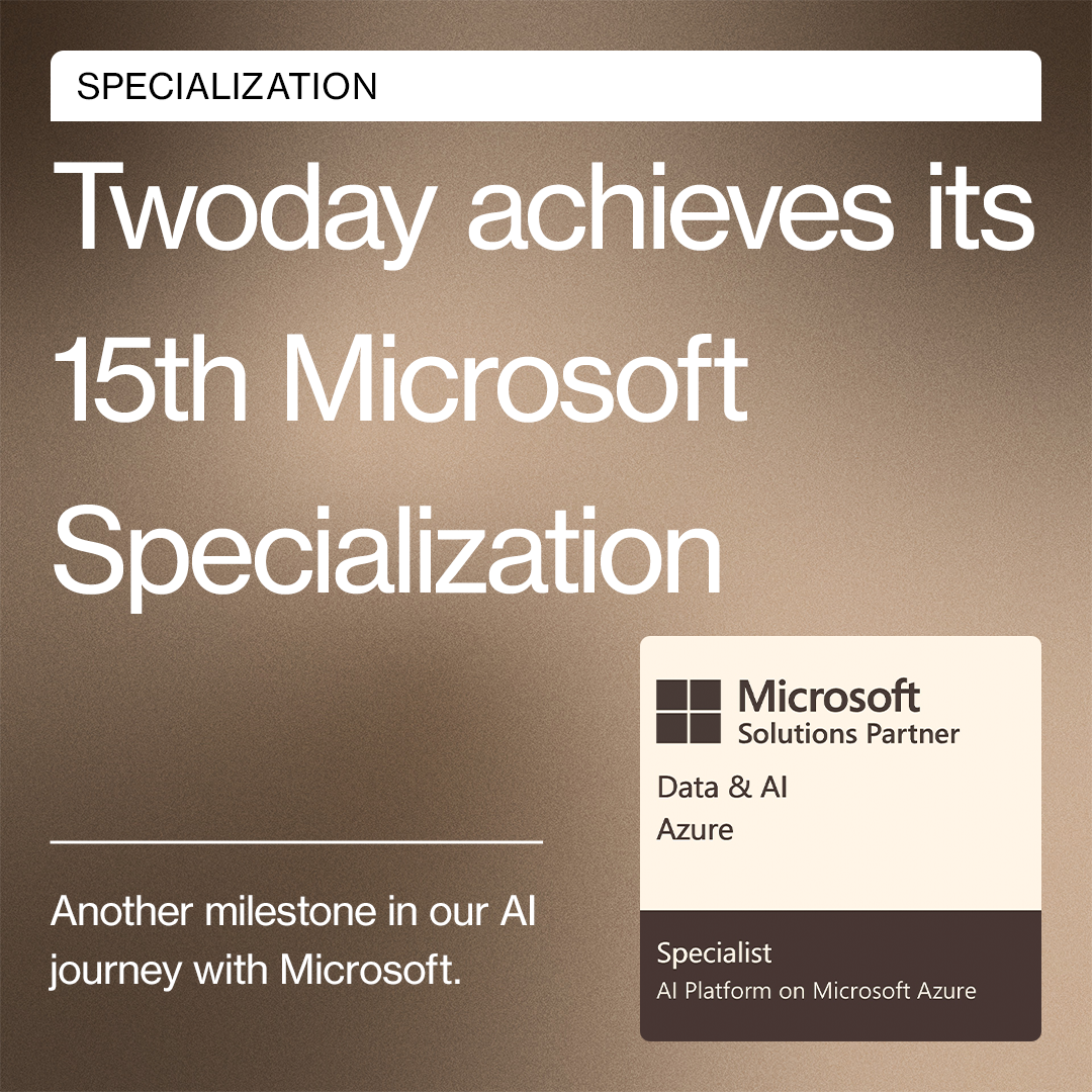 That’s why we’re proud to announce a major milestone: Twoday has achieved the Microsoft AI Platform on Microsoft Azure Specialization, which is our 15th Microsoft specialization. Within just one month, we’ve added three new specializations in Data Security, Copilot, and AI Platform.