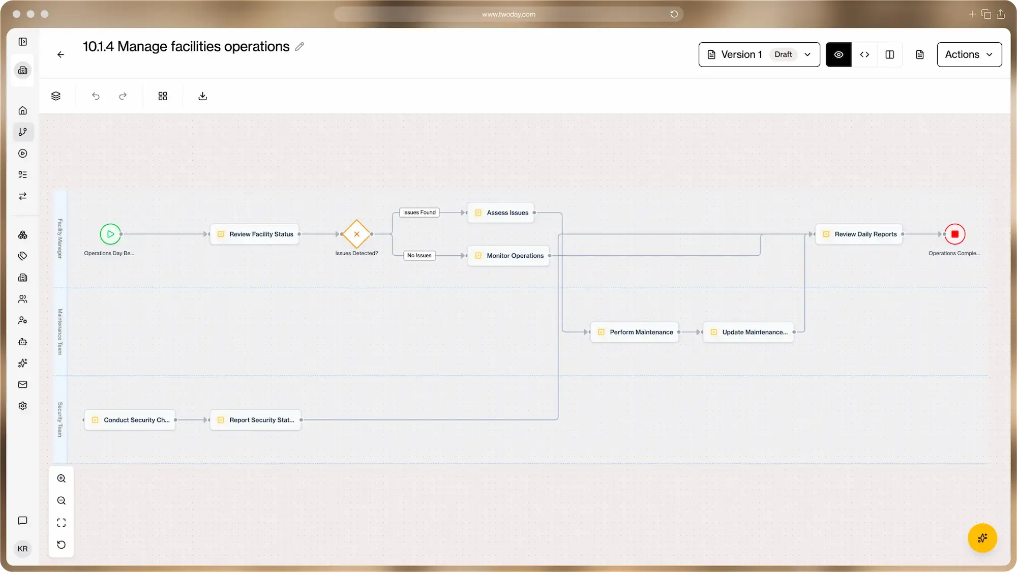 Capture processes in plain language and convert them into structured, task-ready workflows. Add logic, define ownership, and activate them immediately.